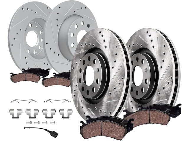 Features:- Kit Includes: (2) Front Drilled and Slotted Brake Rotor + (2) Rear Drilled and Slotted Brake Rotor + (2) Front Ceramic Brake Pad + (2) Rear Ceramic Brake Pad
