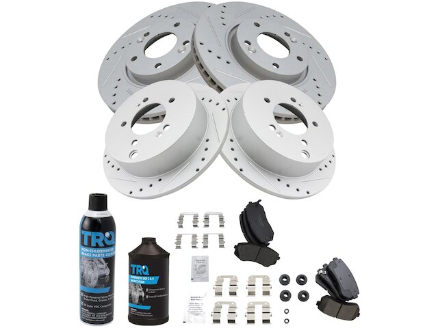 (1) Front Ceramic Brake Pad Set; (1) Rear Ceramic Brake Pad Set; (1) Brake Cleaner & Fluid Kit; (1) Front Premium G-Coated Performance Brake Rotor Set; (1) Rear Premium G-Coated Performance Brake Rotor Set