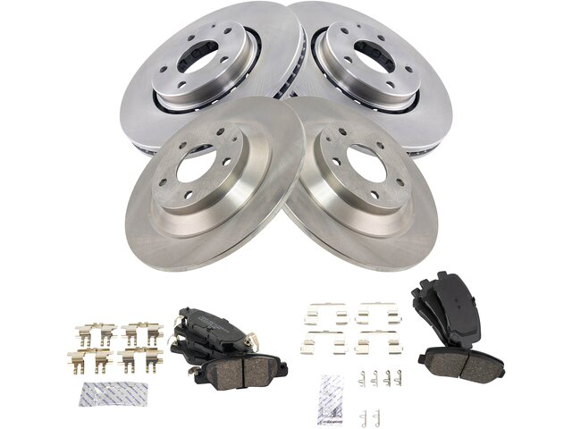 (2) Front Brake Rotors; (2) Rear Brake Rotors; (1) Front Ceramic Brake Pad Set; (1) Rear Ceramic Brake Pad Set