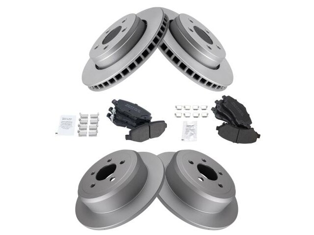 - Package Contents: (1) Front Semi-Metallic Brake Pad Set; (1) Rear Semi-Metallic Brake Pad Set; (2) Front Premium G-Coated Brake Rotors; (2) Rear Premium G-Coated Brake Rotors