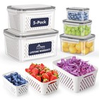 5 Set Fruit Storage Containers for Fridge with Colanders Dishwasher Safe, Lea...