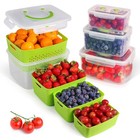 Set Of Fruit Veggie Storage Containers for Fridge Removable Colander, Airtight