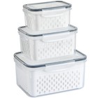 3 PCS Fruit Storage Containers for Fridge with Removable Colander, Leak proof...