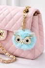 Furry Owl Pom-Pom Bag Charm- Keychain Aqua