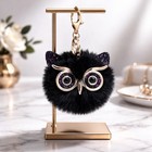 Furry Owl Pom Pom Bag Charm- Keychain Black