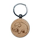 Fuzzy Fluffy Wooly Mammoth Engraved Wood Round Keychain Tag Charm