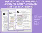 GCSE AQA English Literature Annotated Poetry Anthology 'Love and Relationships'