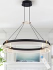 Modern LED Chandelier w/Remote, Dimmable Ring Pendant Light Walnut Wood Black