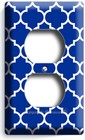 GEOMETRIC BLUE WHITE ARABIC TRELLIS PATTERN OUTLET WALL PLATE BEDROOM ROOM DECOR