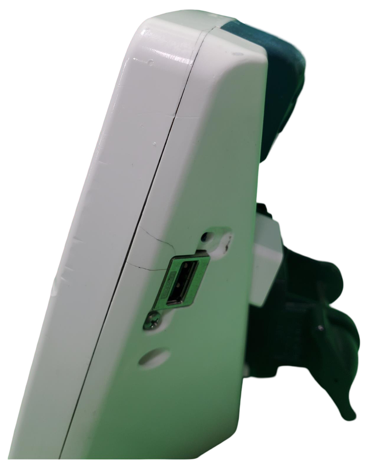 The monitor is in fair cosmetic condition, as it has multiple scratches and other signs of use across the body. It is fully functional but does not include a power adapter or handpiece.