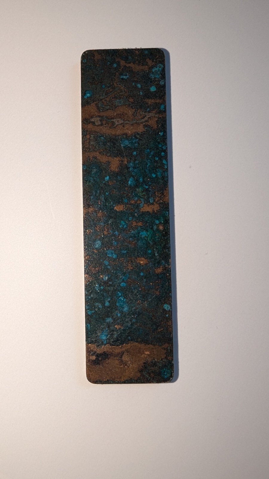 Copper Patina was completed with salt and ammonia. One side has had a clear coat applied. (Mostly as an experiment to see if they aged differently.)