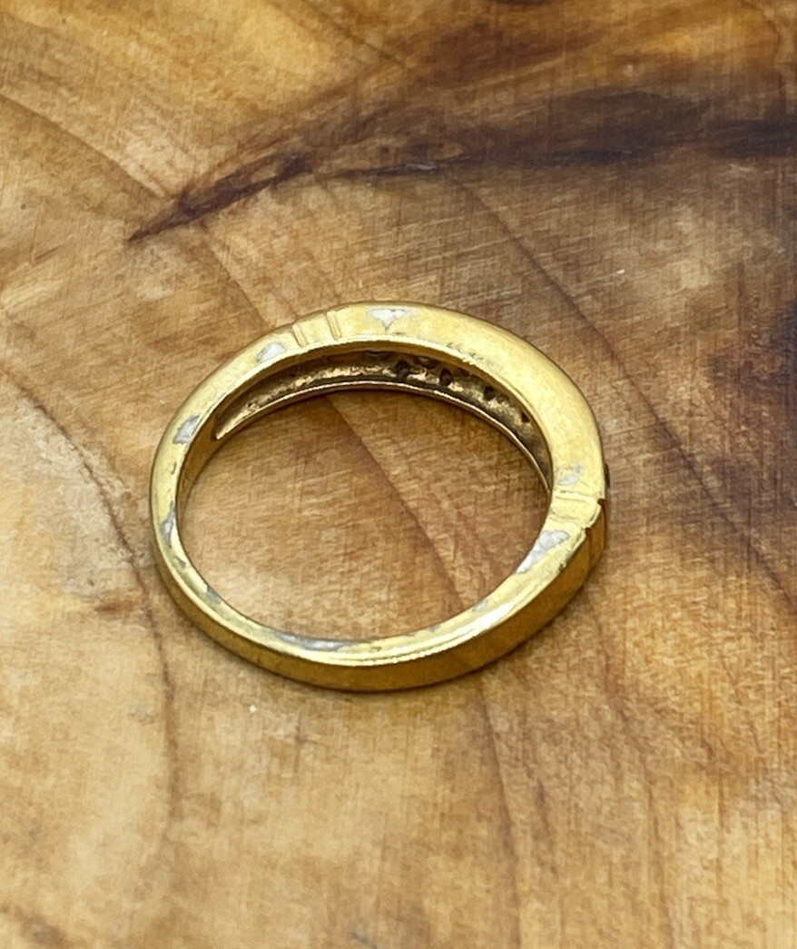 GOLDEN TONE STERLING SILVER AND CLEAR CZ BAND RING SIZE 6.25
