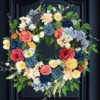 22 inch Wreath Artificial Flower Wreaths Spring Summer Yellow Blue Rose Hydra...