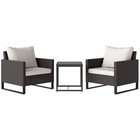 Bistro Set 3pc Brown PE Rattan Steel Frame Tempered Glass Table Chairs 75cm Seat
