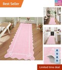 Scalloped Bow Rug for Living Room, Solid Pink Rug for Dorm, Washable Runner R...