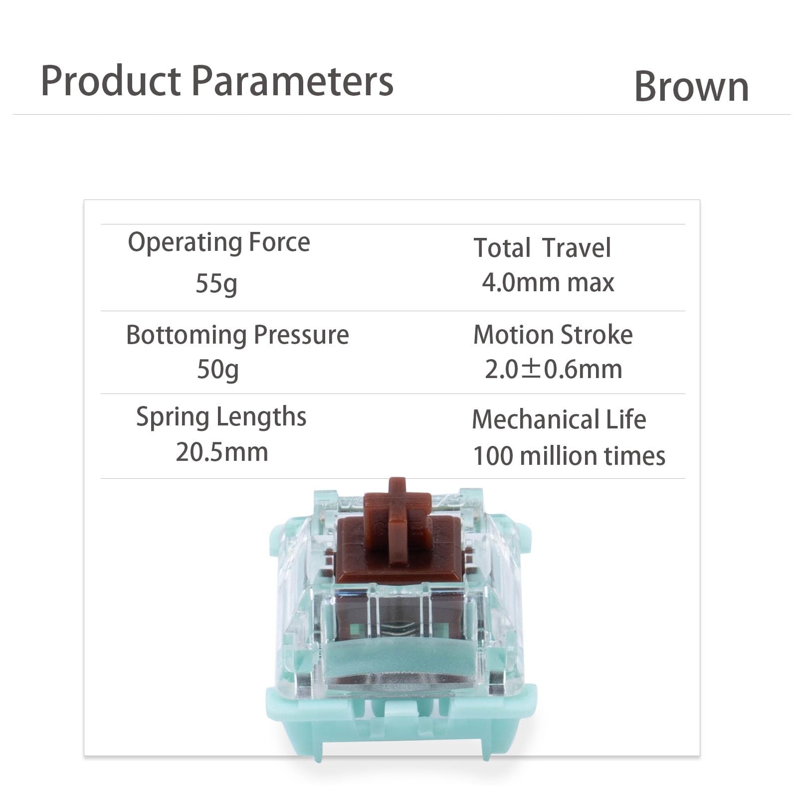 45 PCS Jade Series 3.0 Brown Tactile Keyboard Switches 3Pin 55gf 20mm Spring