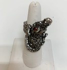 New Women' s Silver Pewter Pave Rhinestone Gator Red Eye Alligator Stretch Ring