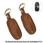 2Pcs Leather Car Remote Key Fob Case Cover Holder Shell For Tesla Model 3 S X Y