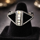 Art Deco Style Black Onyx & Diamond Accent Geometric Ring | Sterling Silver Stat
