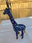 Vintage Chinese Cloisonné-Style Giraffe Figurine – Blue Enamel Geometric Design
