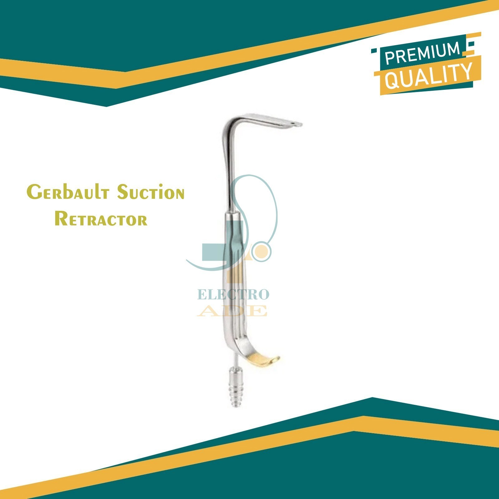 The Gerbault Suction Retractor with Fiber Optic is a specialized surgical instrument used in rhinoplasty and nasal procedures. It combines soft tissue retraction with integrated suction and fiber-optic illumination, allowing the surgeon to maintain a clear, well-lit surgical field. The retractor gently holds tissue aside while continuously removing blood and fluids, improving visibility and precision during delicate nasal surgeries. It is designed for ergonomic handling and is compatible with standard suction and fiber-optic light sources. Made from high-quality surgical stainless steel, it is durable, corrosion-resistant, and suitable for repeated sterilization.