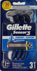 3X Gillette Sensor3 Comfort Disposable Razors for Men 3 Count Triple Blade