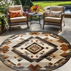 100*100cm Large Round Southwestern Tribal Geometric Area Mat - Beige Brown Black