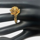 Gold Tone Rose Flower Ring Clear Crystal Center Size 7.5 Floral Statement