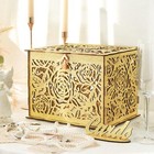 Glittery Gold Wedding Card Box with Lock Wooden Gift Card Box for Wedding Rec...