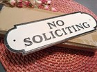 Cast Iron No Soliciting Sign Rustic Farmhouse Metal Plaque Black & White 11.9"