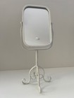 White Metal Tabletop Vanity Mirror With Adjustable Swivel Tilt & Scroll Base
