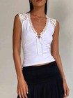 Lace Trim V-Neck Sleeveless Tank Top with Front Tie