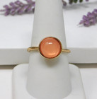 Gold Tone Band & Peach Pink Cabochon Bead Solitaire Cocktail Ring Size 8.5