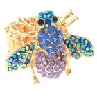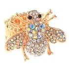 Gold Tone Stretch Metal Bee Ring With Rhinestone R1007-GAB
