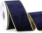 Navy Velvet Wired Ribbon 2.5 Inch Metallic Navy Blue Gold Crushed Velvet Christm