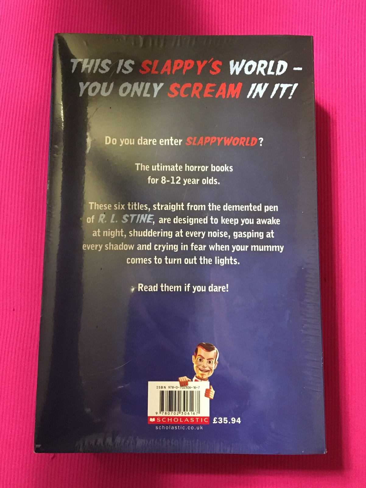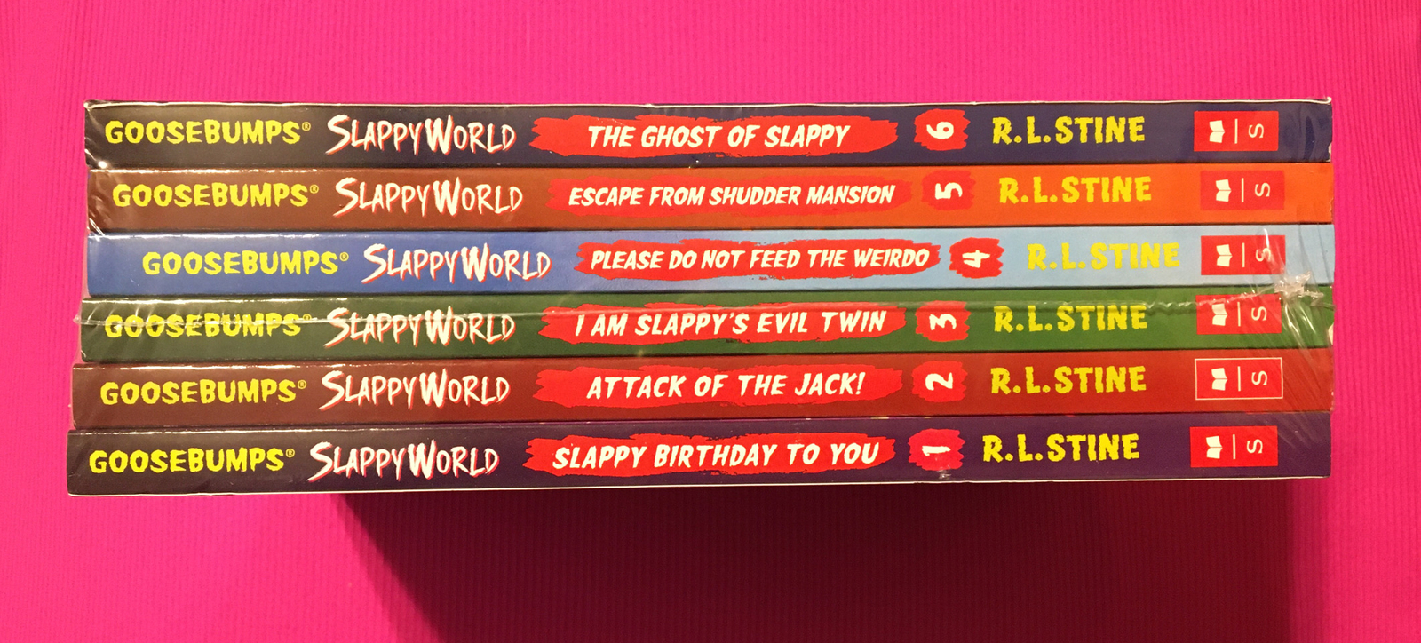 Goosebumps Slappyworld Series 6 Books Collection Set By R.L. Stine. The ultimate horror books for 8 to 12-year-olds. These six titles, straight from the demented pen of R.L. Stine, are designed to keep you awake at night, shuttering at every noise, gasping at every shadow and crying for when your mummy comes to turn out the lights. Read them if you date!
