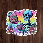 Skeleton sticker vinyl decal spill the tea roses gossip funny colorful mug