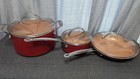 Red Copper Pots and Pan Set Kitchen Cookware Set with Glass Lids 6 Pieces