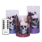 Gothic Skull Flameless Candles Set with Remote Control Timer Function, 3-Piec...
