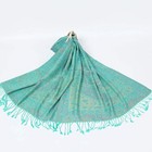 Green Paisley Festival Pashmina Scarf Silky Boho Fringe Wrap