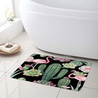 Tropical Green Cactus Pink Flamingo Black Bath Mat Kitchen Floor Rugs 24x16 Inch