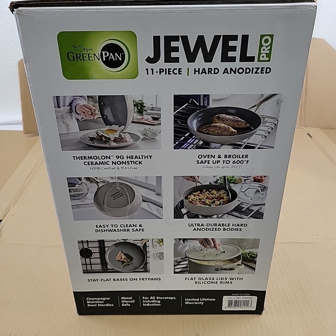 GreenPan Jewel Pro 11-Piece Cookware Set Hard Anodized Nonstick -OPEN BOX