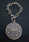 GUESS Silver Tone Metal Bag Purse Charm Key Fob Chain Medallion Faux Leather