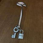 GUESS Lock & Key Silver Bag Charm Hang Tag Designer Logo FOB Y2K Purse Pink