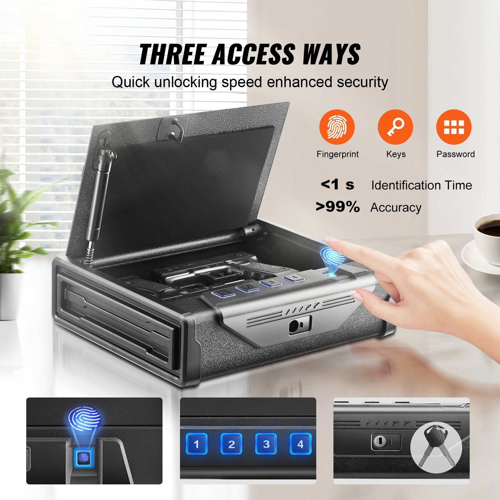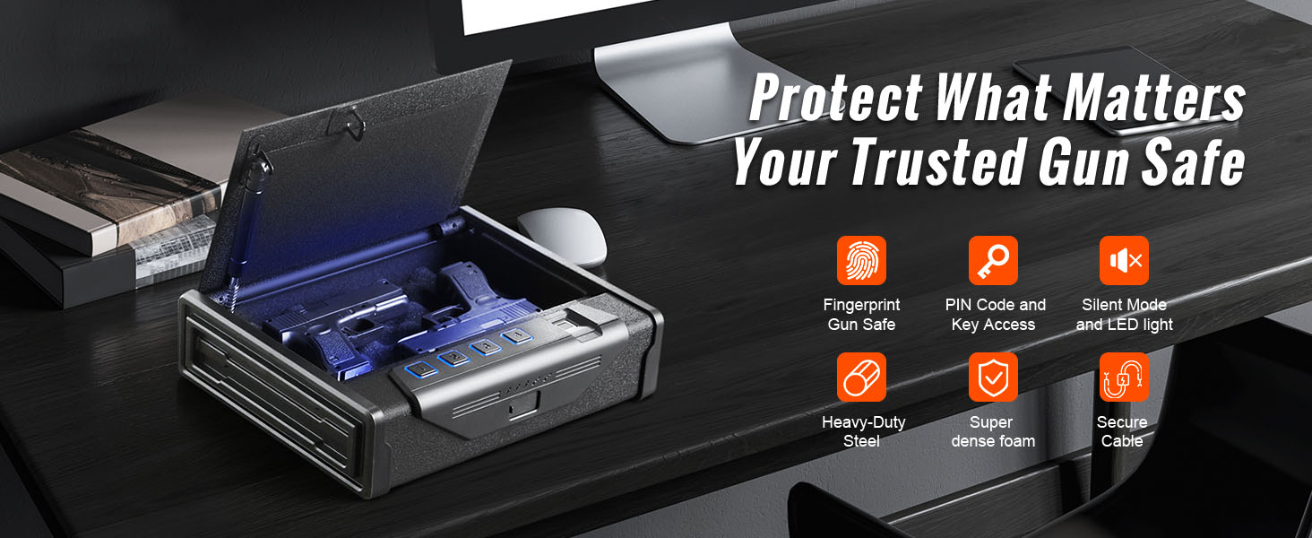 Our handgun safe is used to store pistols, magazines, and other items. It boasts one-second fingerprint unlocking, LED lighting, and silent mode to provide convenience. Made of hard steel shell, and interior foam, it can effectively ensure the safety of your guns. Spacious space to hold 2 pistols!