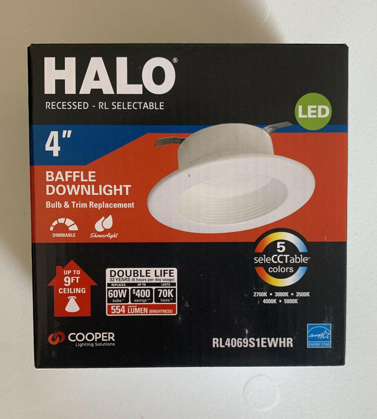 HALO RL Series 4" LED Recessed Light + Baffle Downlight Dimmable White Trim