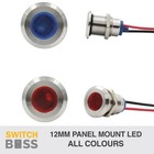 12mm PANEL MOUNT LED Stainless Pilot Dash Indicator Light Car Boat ALL COLOURS