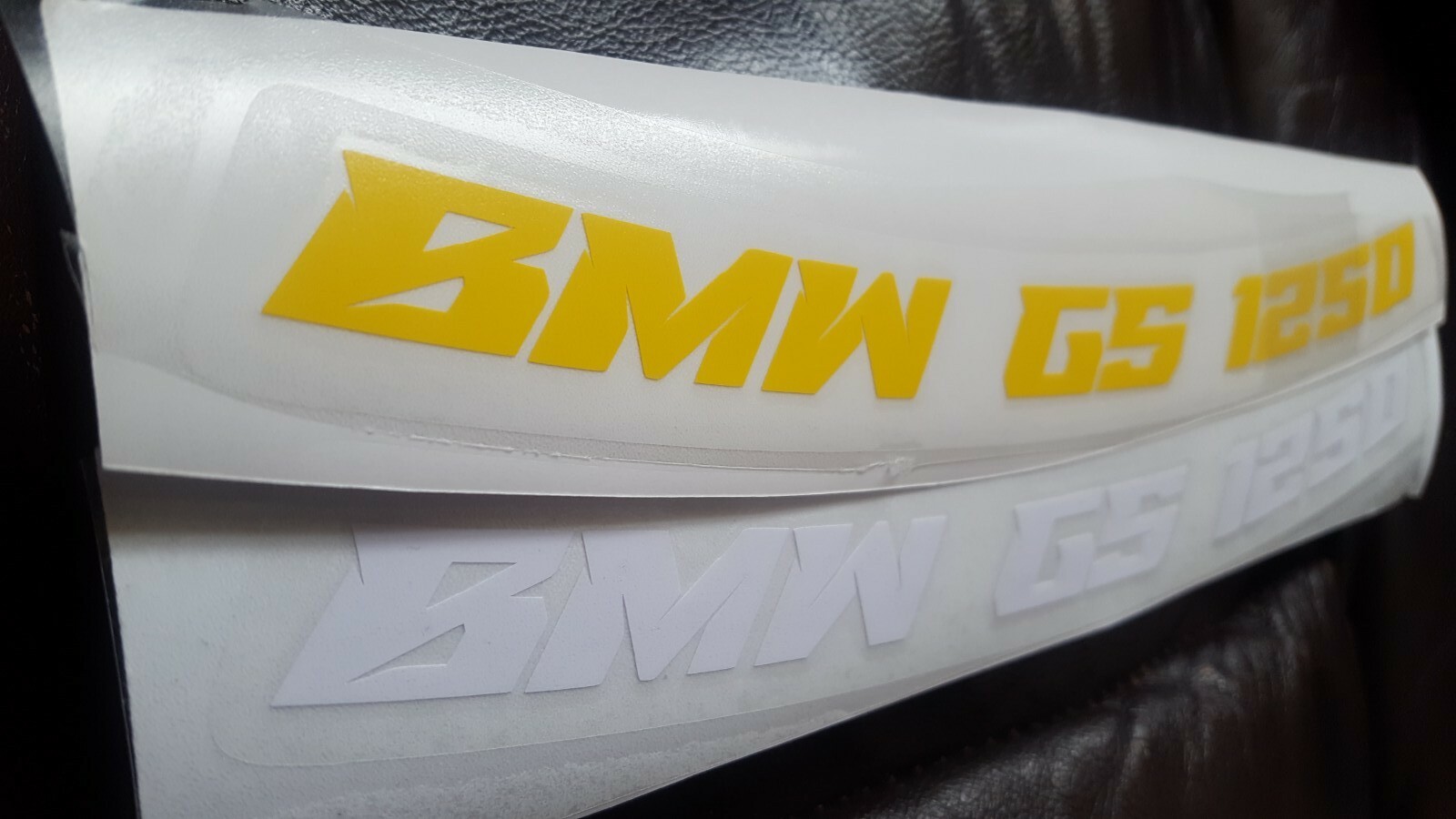 Pic 1.2.3 shows yellow and white words layed on clear strips For BMW GS 1250