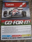 LUCAS MOTORSPORT RACE PROVEN PRODUCTS FOR DRIVERS ADVERT APPROX A4 SIZE FILE V