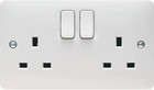 Hager WMSS82 Sollysta 13A 2 Gang Double Pole Switched Socket Dual Earth - White